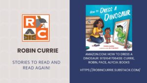 Robin Currie is the author of over 45 picture books, and one really CUTE one about a dinosaur. Her new landing page is at Robin Currie | Substack.
